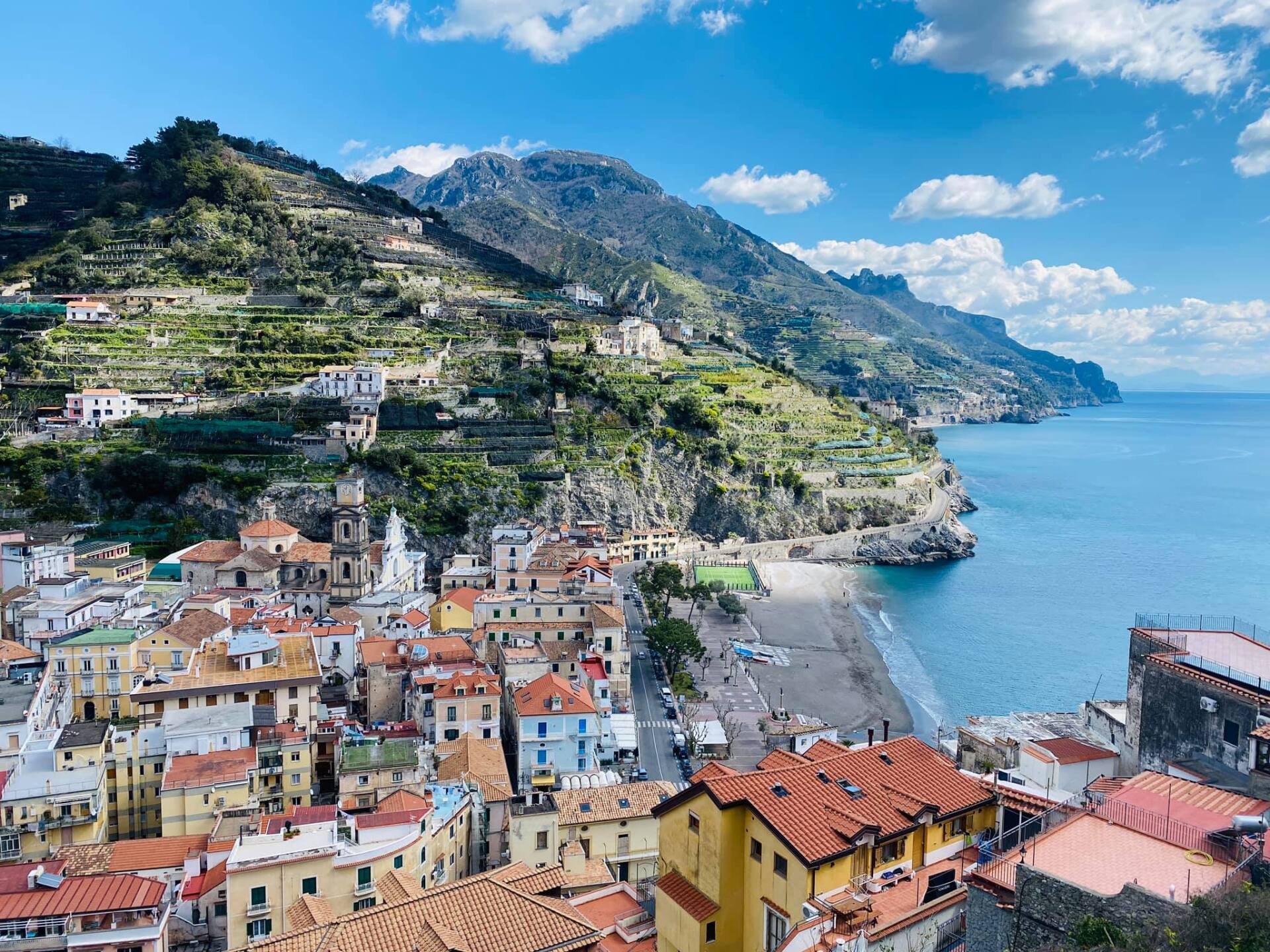 extends for about 55 km and can be explored by taking state road 163, one of the most panoramic roads in Italy: Starting from Salerno, the road continues towards Vietri sul Mare, Cetara, Maiori, Tramonti, Minori, Scala, Ravello, Atrani, Amalfi, Conca dei Marini, Furore, Praiano up to Positano.